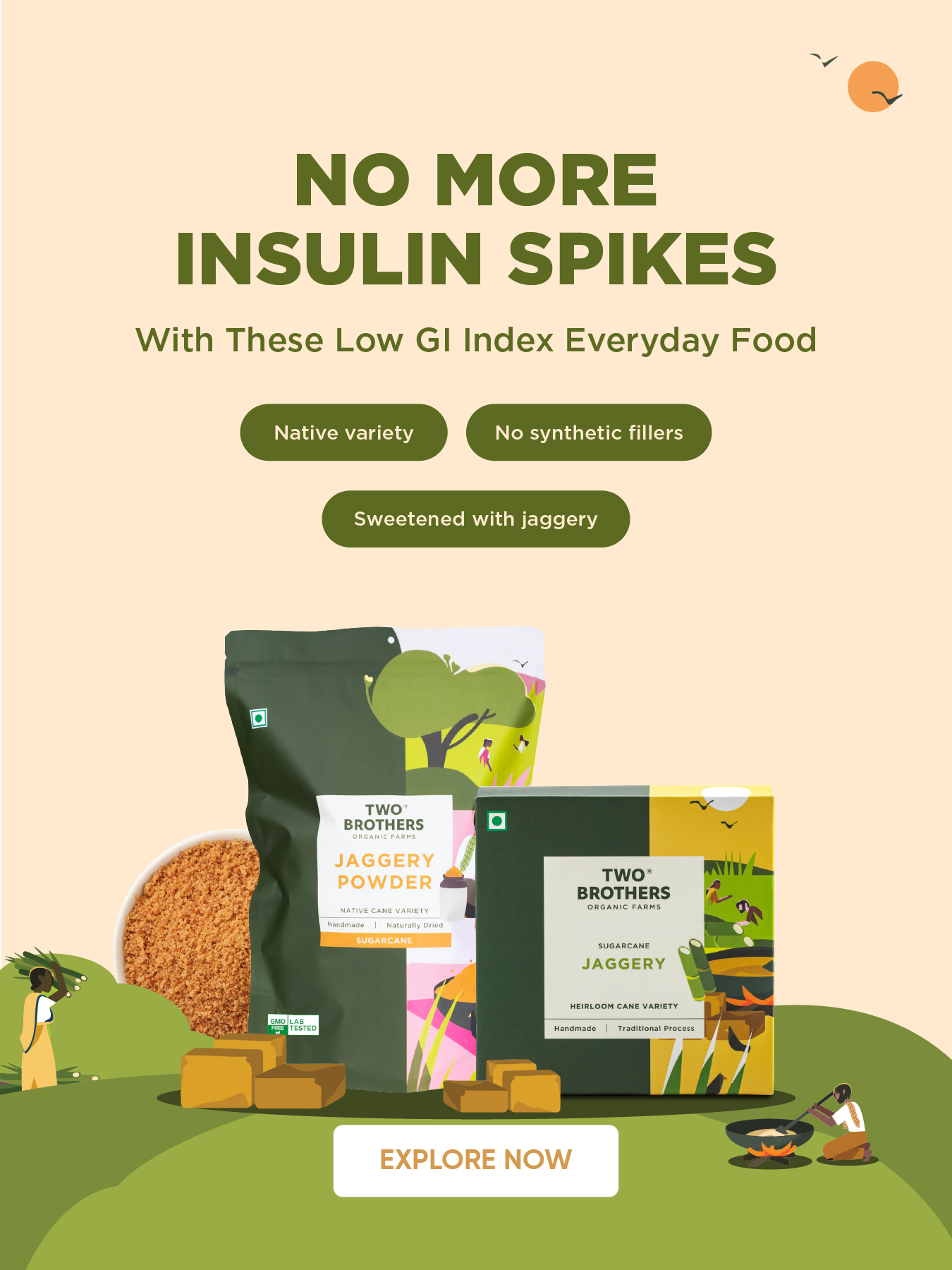 Sugarcane Jaggery, Crushed Granular₹506Sale price ₹575 Regular priceSulfur-free | Heirloom variety4.9 2k+ ReviewsSale price₹150Your Savings