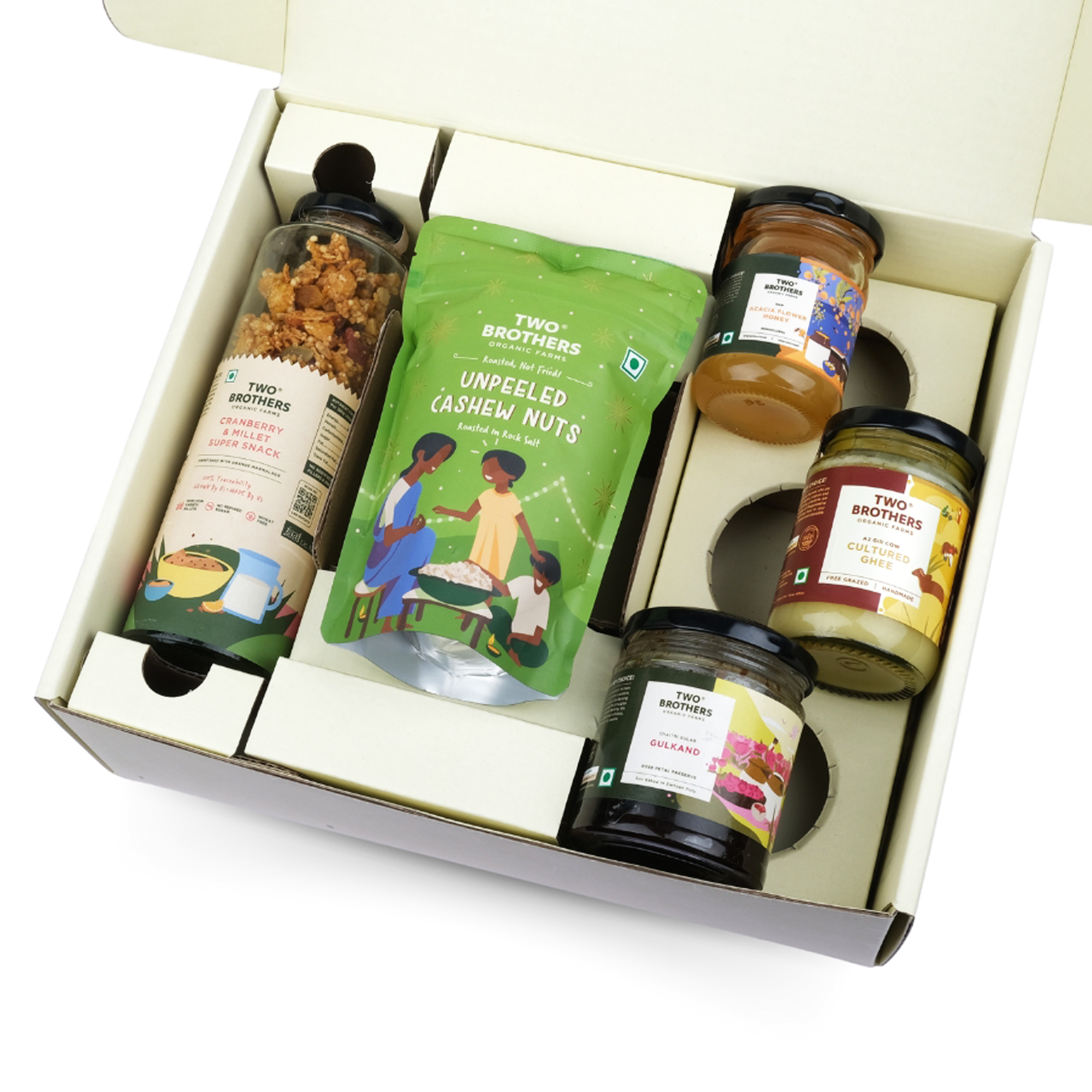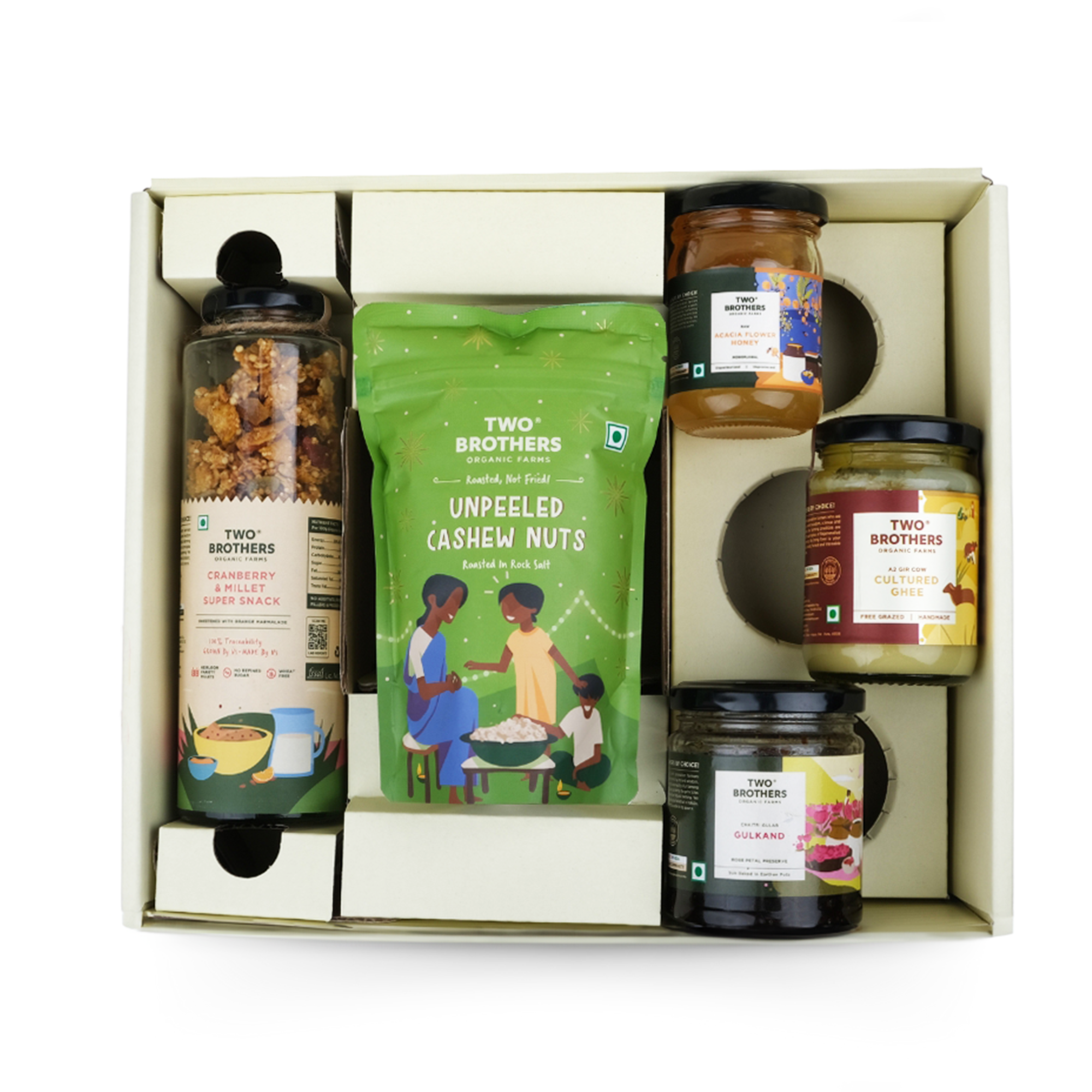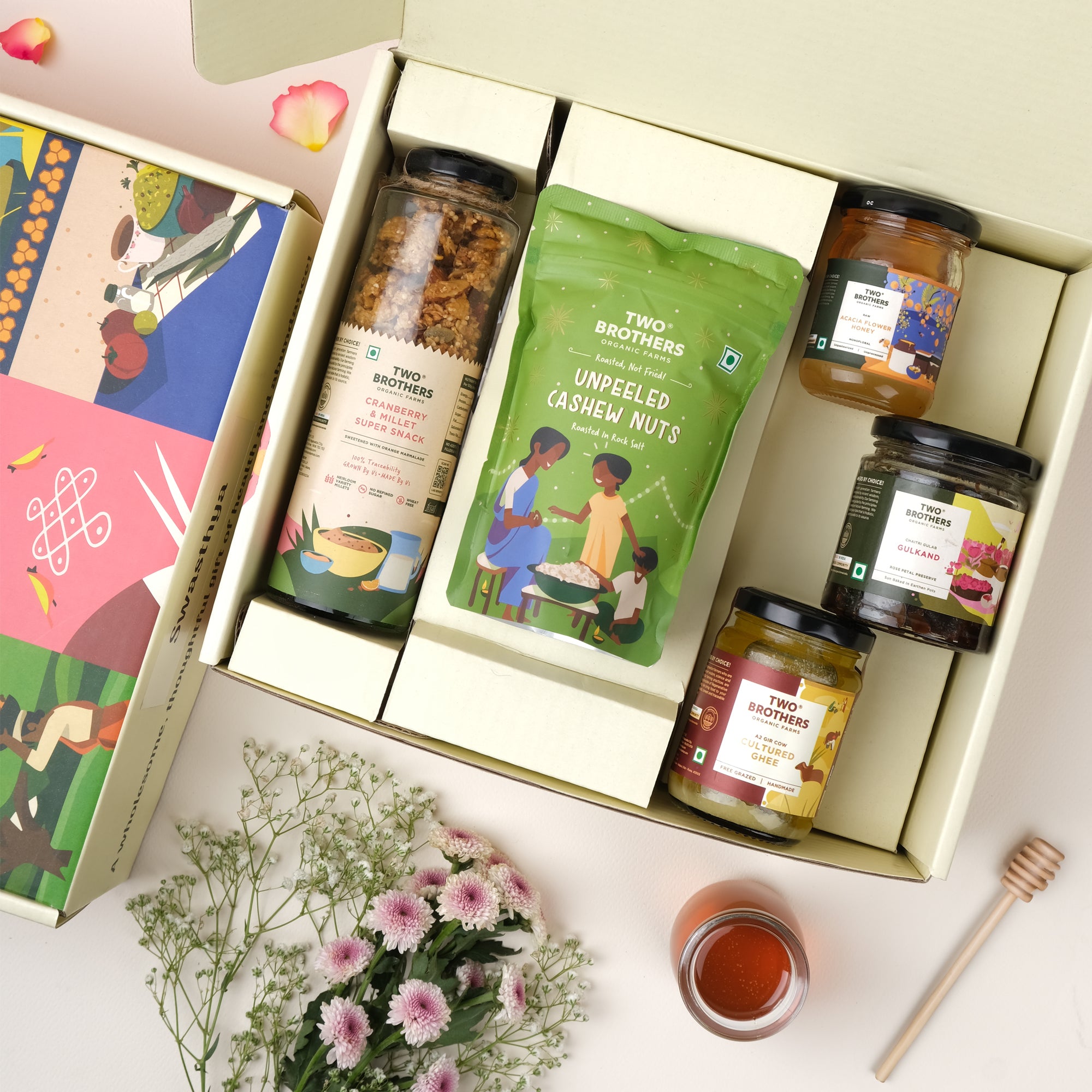 This delightful basket is a celebration of pure indulgence. Curated with an aim to make healthy choices tasty and wholesome. It features a tasty and antioxidant-rich mix, luxurious and healthy nuts, a traditional rose petal preserve, pure and desi ghee for a rich flavor experience, and a delicate and aromatic honey variety.